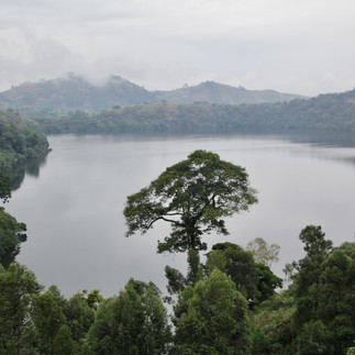 Slept really well! refreshed for todays exciting activity of hiking the Amabere crater lakes. Our early departure scuppered by a U-Turn as we realised it was now raining and we had not brought any rain gear. As it turned out we didn’t need it - though it remained cloudy all day and the Rwenzori mountains stubbornly hid behind a thick blanket of cloud, and smoke from the relentless burning of fields for cultivation - being the end of the ‘dry’ season this appears to be a National Hobby. It was good to do some exercise! Some of the gradients decidedly steep! Along with the craters is the Ambere waterfall and cave with lots of local legends about a princesses breasts which were cut off and stored there (there seem to be many variations of why this was the case). The reference is of course to the stalactite’s at the back of a not very auspicious cave, more of a grotto. However, Sue and I did feel some kinship with the place given our history - I refrained from embarrassing people by whipping out the prosthetic for a selfie. We were meant to go for the swamp tour, but Sue and I knackered and opted to just hang out at the hotel. I did some yoga, with frequent interruptions to admire the Large Blue Turacos, long crested eagles and others! A very pleasant afternoon that finished with dinner for all the guests very creatively laid out on the lawn amongst 'bamboo curtains'.
